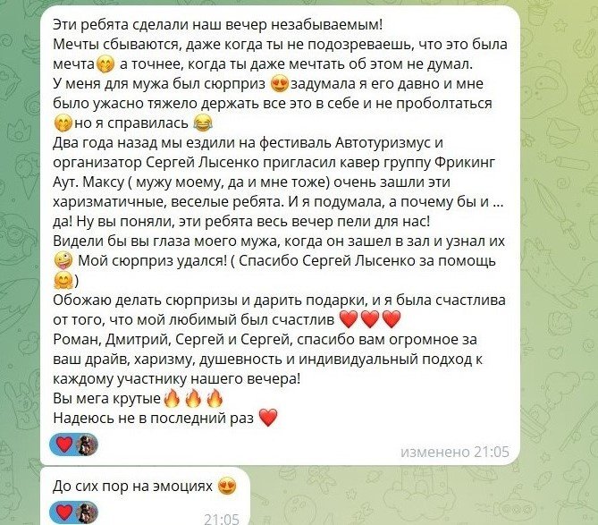 Из анкеты: Кавер группа "Фрикинг Аут"